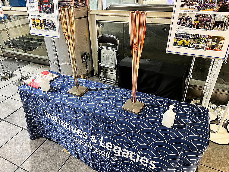 会場では、東京2020大会のレガシーに関するパネル展示や映像展示のほか、オリンピック・パラリンピック聖火トーチなどのシンボル展示、VRパラ競技体験などのコーナーを設置。