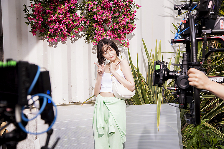 この新CMでは、合計9種類のファッションコーデを、渋谷ストリームや東京国際フォーラムなどを舞台に撮影。