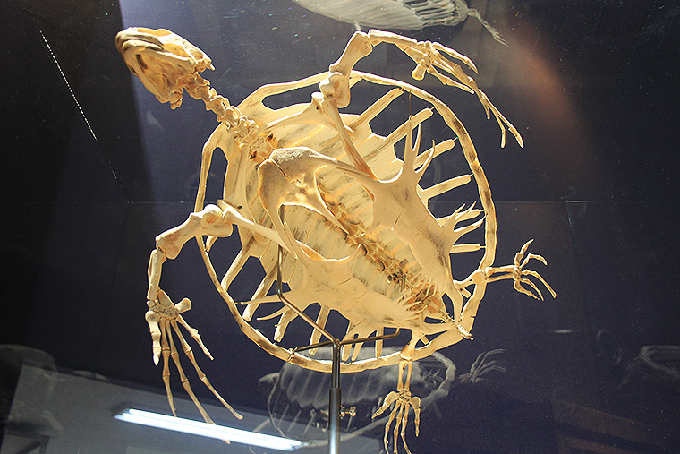 通常の博物館では、展示物に触れることはできないのに、ここ麻布大学「いのちの博物館」のハンズオンコーナー(原則土曜日限定公開で現在は休止中)では、骨に直接触れて、抱えて、動かして観察でき、動物の骨格・身体を直感的に理解できる。