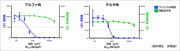 「5-ALA の摂取で新型コロナウイルスの増殖が完全に抑えられることが、細胞を用いた試験で確認できました。これはもともと研究していたマラリアが5-ALAで抑制されるのと同じメカニズムから着想を得たもので、マラリアと同様に、5-ALA の産物がウイルスの増殖を阻害すると予想し、それが的中しました。