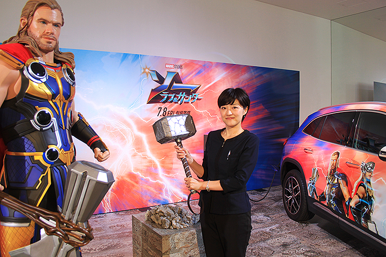 ―――これ、「雷神ソーと電気自動車EQAで、雷と電気を感じる特別展示」ということで、7月13日まで期間限定で開催されているコラボイベント。