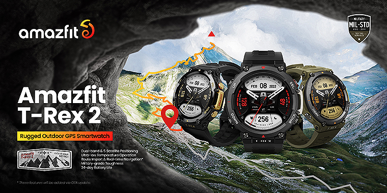 軍用レベルの頑丈さ・タフネスさ、トップアスリートをアシストする高精度、筋力トレーニングをスマート認識・高度分析―――そんなアドバンテージでいま注目を集めている高精度GPSスマートウォッチが「Amazfit T-Rex 2」