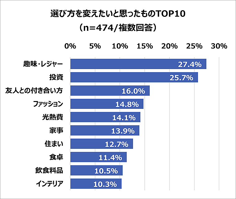 「選び方を変えたもの」に趣味・投資・友人との付き合い方が上位に