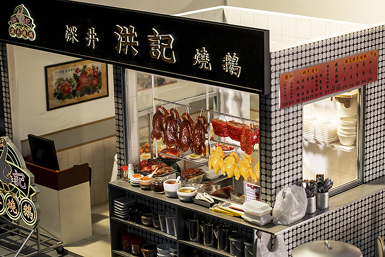 「深井村名物、ガチョウの丸焼き」や「西貢の海鮮料理屋」「観塘の潮州料理専門店」といった各地のグルメから「香港スタイルの軽食店」「中華焼き菓子の老舗」「庶民のおやつを売る屋台」など、香港の人たちの日常を彩る食べ物まで、ミニチュアで忠実に再現!