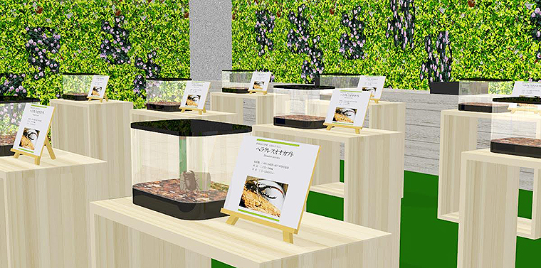 「世界のカブト&クワガタ展」では、日本に生息していない世界各地のめずらしいカブトムシとクワガタムシ合計12種類の展示をはじめ、撮影コーナーやふれあいコーナー、標本展示コーナーなど、子どもたちの憧れの昆虫である「カブトムシ」と「クワガタムシ」の世界を存分に体感できる空間。大人も童心に帰れるコンテンツで構成する。
