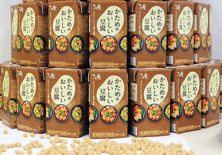 なんと、この「かためのおいしい豆腐」、おいしさそのままに常温で120日間保存できる!