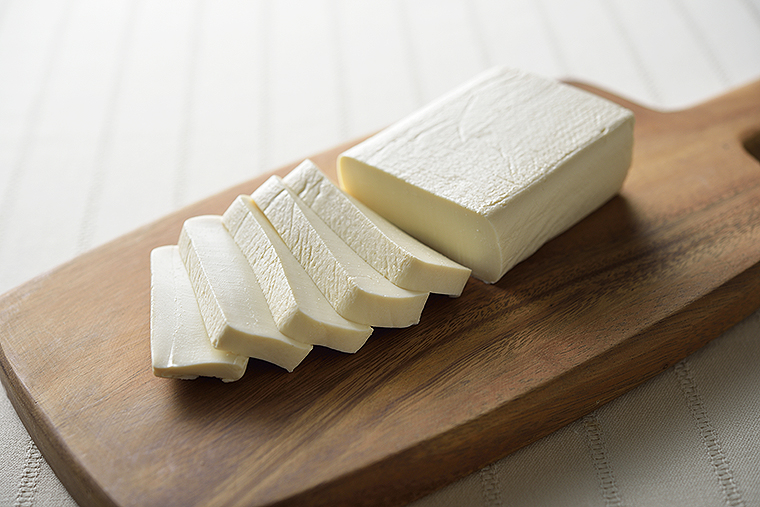画像は「かためのおいしい豆腐」塩とうふ。まるで濃厚チーズのような旨さ。