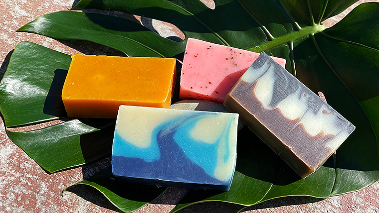 講師:市川こうこ―――熱川プリンスホテルの源泉から湧き出した温泉を贅沢に使用した、身体と地球に優しい石けんのワークショップ。約100gの石けんが出来上がります。