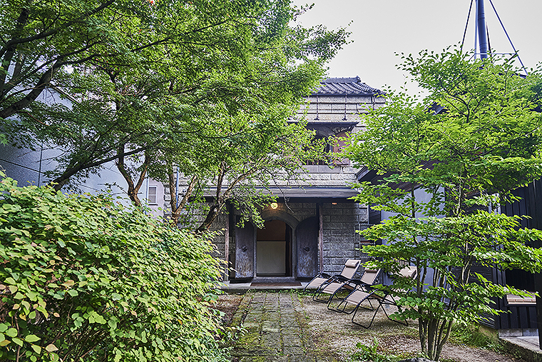 路地裏の石畳の向こうにひっそり佇む古い石蔵をリノベーションし、石蔵と緑、歴史と四季に包まれながらととのえるサウナ空間。