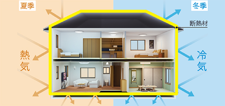 建物全体を断熱材ですっぽりと包み込むアエラホームの「外張断熱工法」