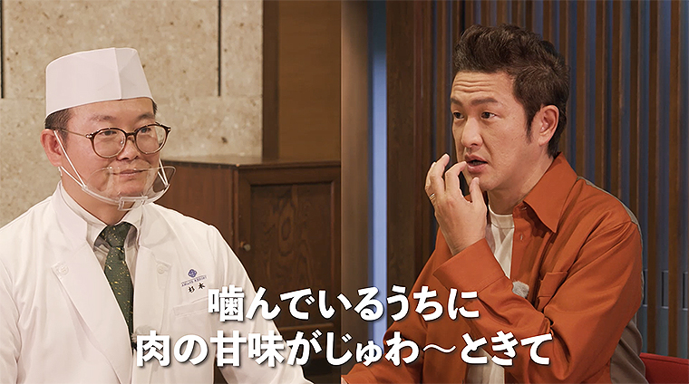 「唇まで美味しい!」と余韻をかみしめ、ついには「参りました!」撮影が終わっても、追加で肉寿司を注文されるほどおいしかったとか。
