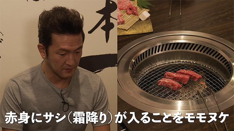 肉追い人のオーナー、今井さんが焼く「おおいた和牛」を堪能した後、2品目に「肉寿司」が出されると、実は生肉は苦手だという中村獅童。