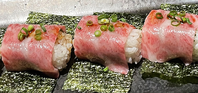 苦手な生肉をあぶった肉寿司を絶賛!