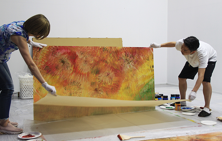 裏側から描いていたのかと周囲もびっくり。「さあ、もう一枚を仕上げなきゃ」と……。