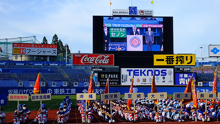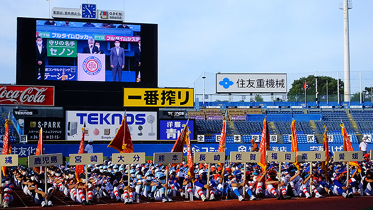 「こうして球場でみなさんとお会いできることをすごくうれしく思います。これから大会が始まるにあたって、勝ったり負けたり、あると思います。しかし、仲間を信じて、最後まで熱意を込めて、がんばってください。