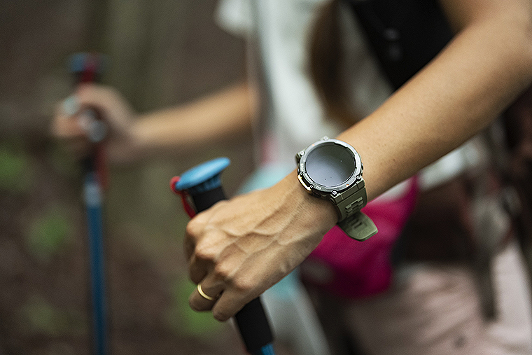 歩行距離や高度、心拍数のモニタリングや、5つの衛星測位システム(GPS)を活用したナビゲーション機能を体験した。