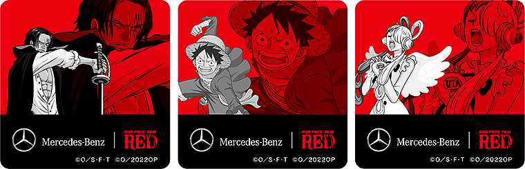 また8月31日まで、メルセデス ミー 東京(六本木)/大阪/@品川プリンスホテルのガラス面に『ONE PIECE FILM RED』のメインキャラクター、ルフィ・シャンクス・ウタのビジュアルが登場! これも映えるスポット間違いなし。