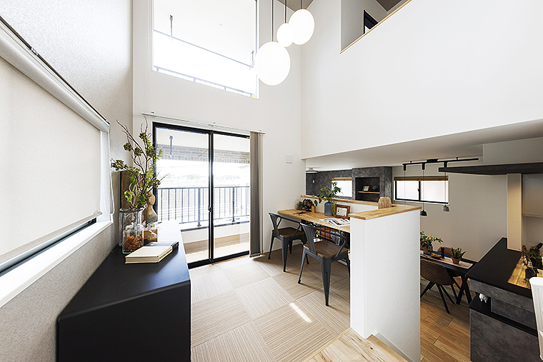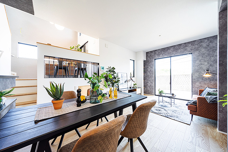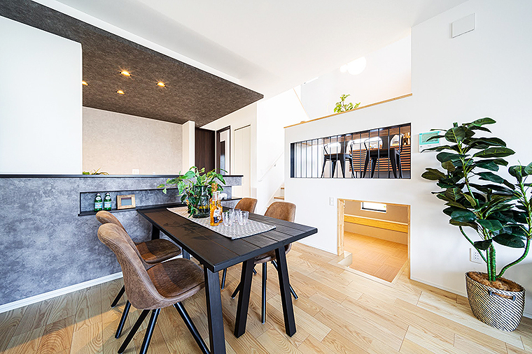 また、居住空間も家族を見守れる空間設計に。たとえば仕事や家事の途中でも、ゾーニングされつつも視線が常に通り、家族みんなの姿が視界に入るつくりになっている点も特長。