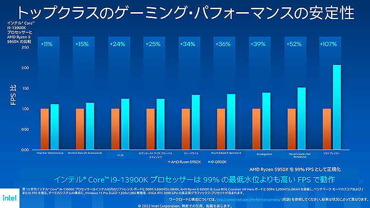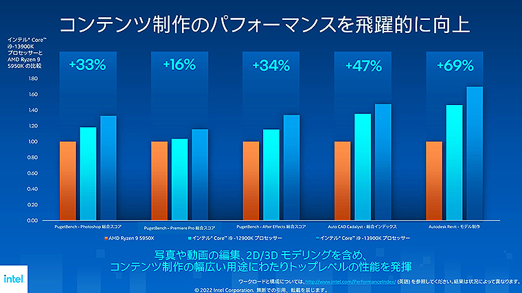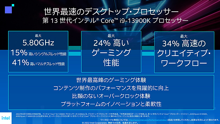 インテルは、世界最速レベルのデスクトップ・プロセッサー第13世代インテル Core i9-13900K プロセッサーを最上位製品とした、第13世代インテル Core プロセッサー・ファミリーを発表。