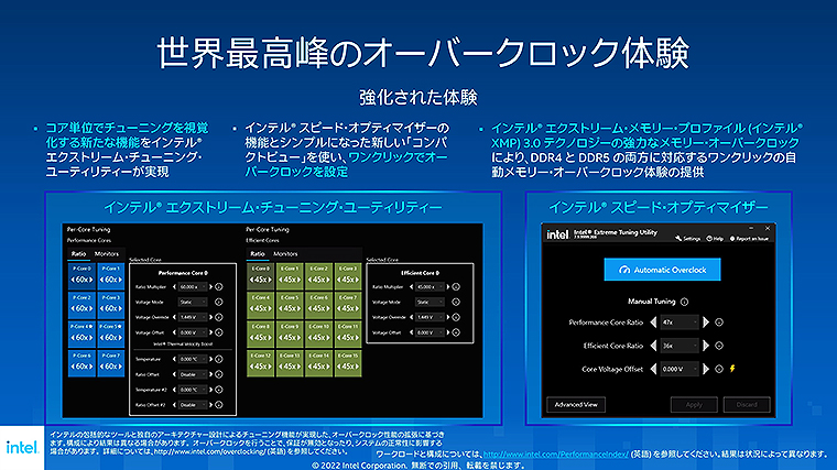 また、ワンクリックでかんたんにオーバークロックできるインテル スピード・オプティマイザーも第13世代プロセッサーに対応するようアップデート。ユーザーは最小限の労力でオーバークロックを実施できる。