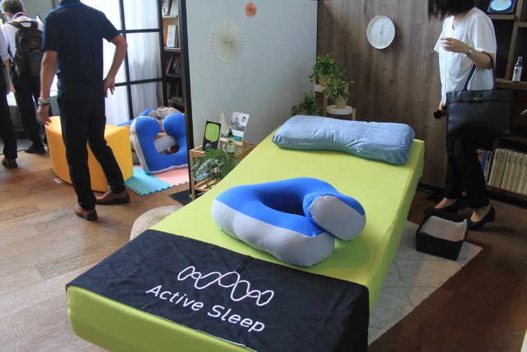 『眠りを楽しむ3DAYS』イベント初日には、実際に展示されている「Active Sleep BED」(アクティブスリープベッド)に、サッカーもと日本代表 大久保嘉人も体験。