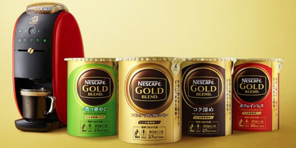 ネスレ日本の「ネスカフェ ゴールドブレンド バリスタ」は、レギュラーソリュブルコーヒー「ネスカフェ ゴールドブレンド」などの専用カートリッジ「ネスカフェ エコ&システムパック」を使って手軽に多彩なコーヒーメニューが楽しめるマシン。