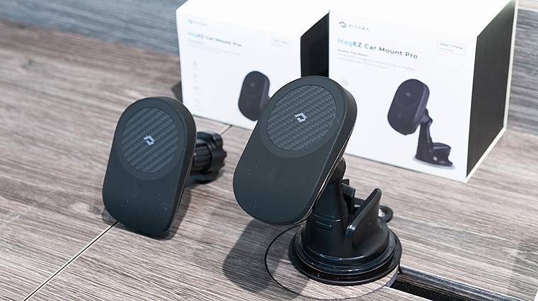 カーマウントセット「MagEZ Car Mount Pro」。エアコン吹き出し口用と吸盤型の2種類をラインナップ。