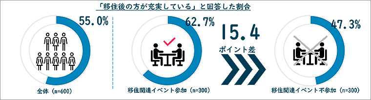 ―――移住後の充実度は移住関連イベント参加で15.4ポイントアップ
