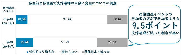 ―――移住後の夫婦喧嘩の増減は移住イベント参加で差があり