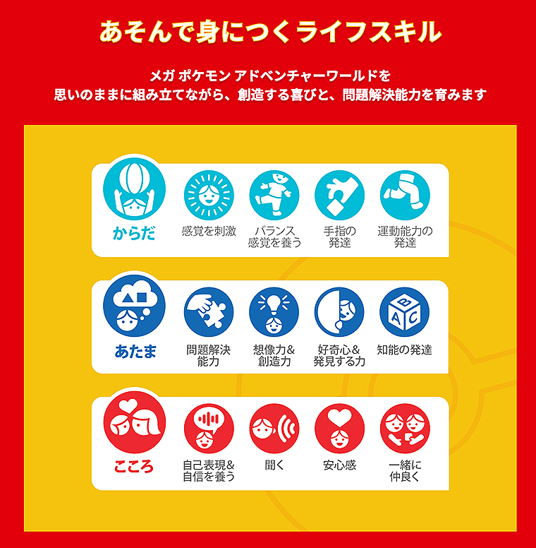 ◆ほかのアドベンチャーワールドシリーズと組み合わせれば、ポケモンの世界を飛び越えた、自分だけの無限の世界&冒険が楽しめる! 遊びながら試行錯誤し、知らないうちに創造力を鍛えられる知育要素も満載!