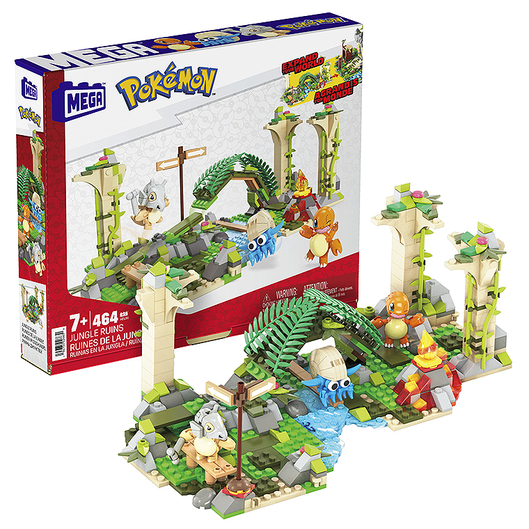 464ピースのブロックで、ポケモンたちが隠れる古代遺跡を再現できるブロックセットです。