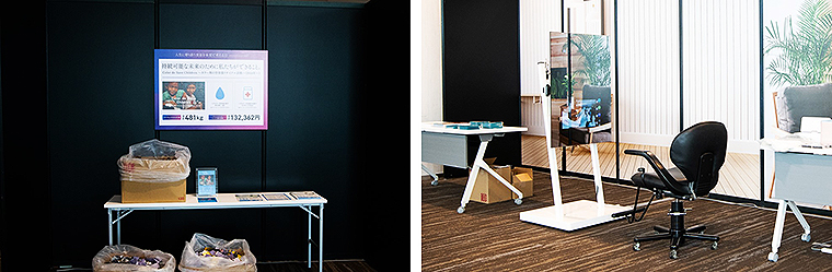 また、会場には SDGs の取り組みとして、カラーチューブ回収コーナーやラオスの美容、経済発展に貢献する「ラオスビューティープロジェクト」を紹介し、古着を回収するコーナーも公開した。