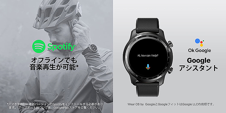 Spotify もデフォルトでインストールされていて、好きな曲をすぐに呼び出したり、Google Pay でクレジットカードと紐付ければ、コンビニなどでのレジでもこの「TicWatch Pro 3 Ultra GPS」でピッとやってNFC決済できちゃう。これも便利。