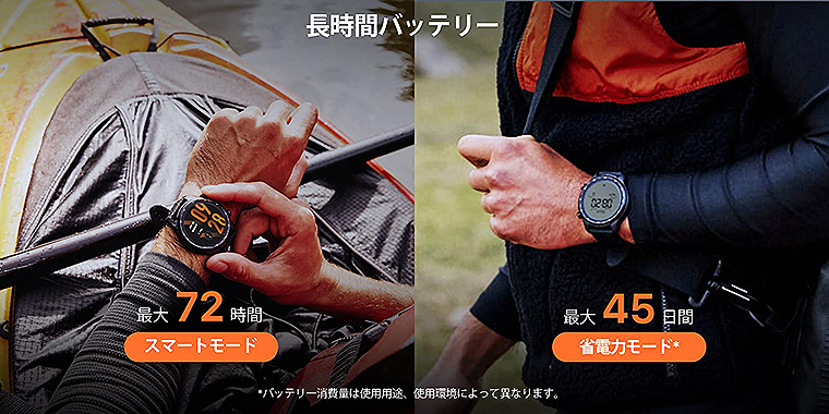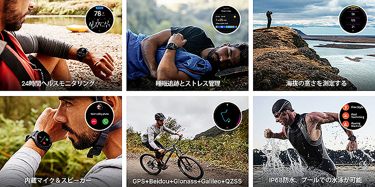◆センサー:加速度センサ、ジャイロ センサー、HD PPG 心拍数センサー、SpO2 センサー、低遅延オフボディーセンサー、バロメーター