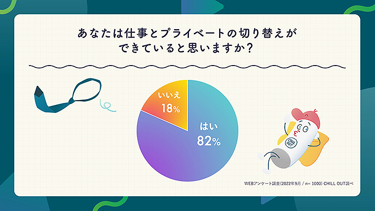 そのほか、82%が「仕事とプライベートの切り替えができている」と答えたいっぽうで、約77%が「退勤後も仕事の連絡に対応」し、仕事が頭から離れていない「脳の過労」状態にある可能性が示唆された。