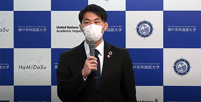会見で神戸市外国語大学 国際関係学科4年生 萩健夫 議長補佐役は、こう意気込みを伝えた。