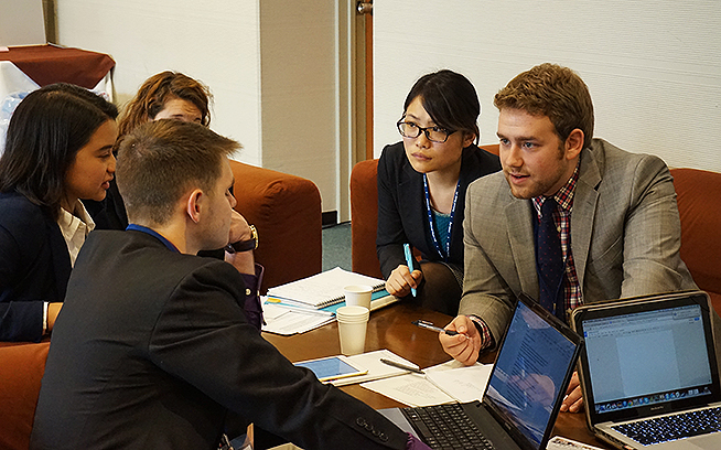 「今回の模擬国連世界大会では、ほんとうの平和とはなにかを考える機会です。主催する大学の大使団長として、めざす目標を話し合いました。