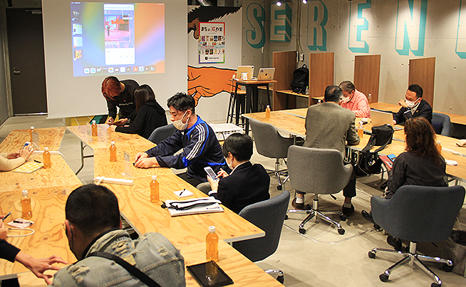10月26日には、イラストレーターの北沢直樹さんが登壇し、集まった下北沢の個人経営者たちに Adobe Express の魅力や操作性、可能性について伝授した。