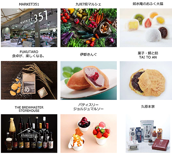 MARKET351/九州7県マルシェ/如水庵のおふく大福/FUKUTARO 食卓が、楽しくなる。/伊都きんぐ/THE BREWMASTER STOREHOUSE/久原本家/パティスリージョルジュマルソー/菓子・鯛と餡 TAI TO AN など、地元九州産農産物を取り揃え、食の未来を見据えて実際に行動に移している生産者等と会話しながら買い物を楽しめる場に。