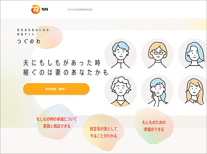 当社では、昨年2021年10月20日より中小企業経営者の妻に向けた情報提供サイト「つぐのわ」(https://www.nnlife.co.jp/wife-succession)の運用を開始しています。