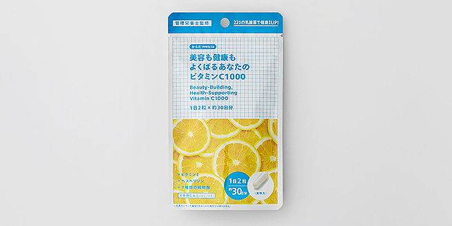 「ビタミンC」だけでなく「E」を配合することで、抗酸化作用も意識した品。目安量の1日2粒で、レモン50個分のビタミンCを摂取できる。美容と健康が気になる人におすすめ。388円。