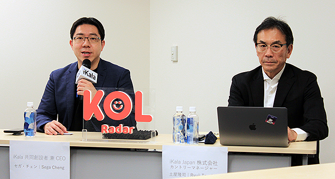 その日本法人 iKala Japan(アイカラ ジャパン/東京都渋谷区)のカントリーマネージャーに土屋隆司氏が就任。東京・銀座で11月11日に開いた発表会には、iKala 共同創設者 セガ・チェン(程世嘉)CEO も出席し、今後のビジョンを伝えた。