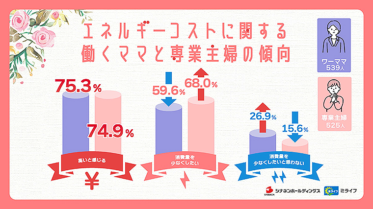 7割以上がエネルギーコスト高、ワーママと専業主婦とでは消費量を減らしたい意向に異なる傾向
