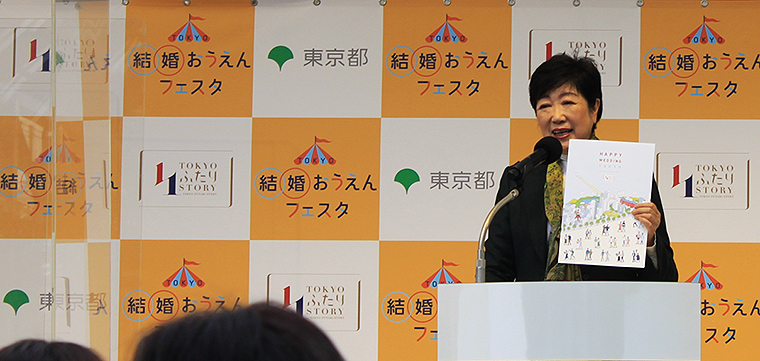 ―――そう語るのは、東京都 小池百合子 知事。小池都知事は11月26日、東京・恵比寿での「TOKYO 結婚おうえんフェスタ」に登壇。東京都結婚支援ポータルサイト「TOKYOふたりSTORY」(https://www.futari-story.metro.tokyo.lg.jp/)や、TOKYOふたり結婚応援パスポート(https://www.futari-passport.metro.tokyo.lg.jp/K0030)を紹介し、東京都オリジナル婚姻届などもあることをイベント参加者に伝えた。