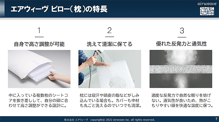 睡眠と美容は切っても切れない関係。エアウィーヴというと、アスリートのイメージだけど、美容にこだわる若い女性などにもおすすめしたいですね。この枕から睡眠環境を変えてみてほしいです。