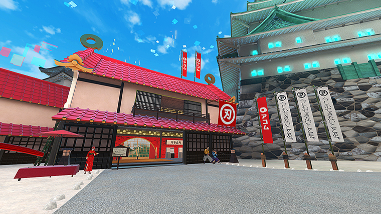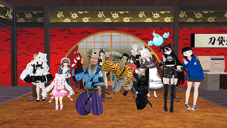 そんなアコムの安土桃山時代2階建てブースに、 かまいたち 濱家隆一 山内健司 が入ると、事前に先着でイベント参加当選したファンのアバターが待ち構え、VR空間でファンイベントがスタート!