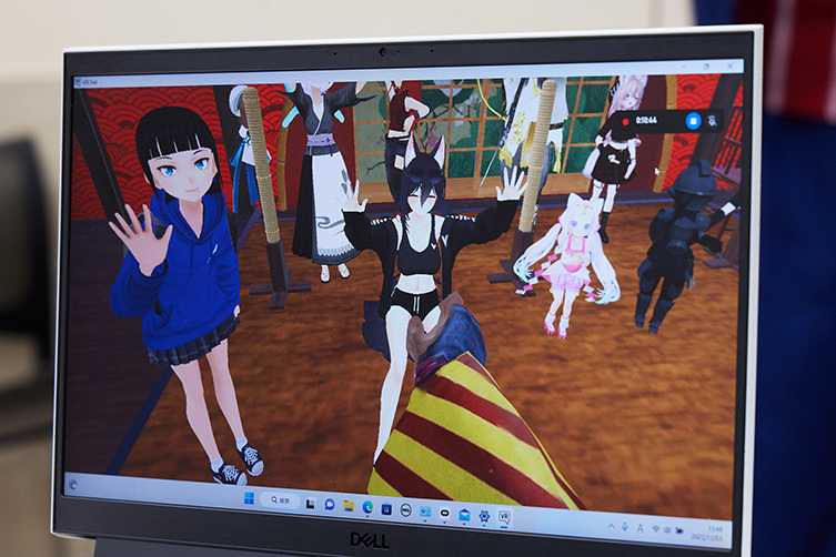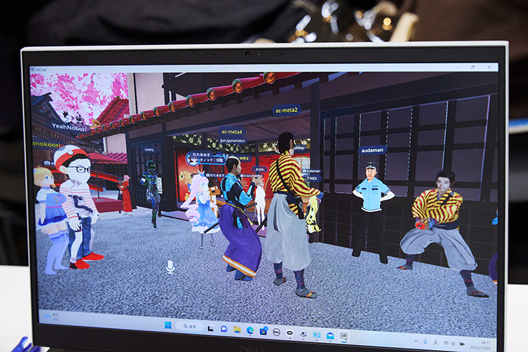 山内健司は展示された自分のアバターを見て、横に立つ警備員さんに「これ触っていいんですか?」と VR ならではの交流も。
