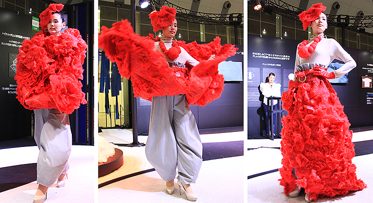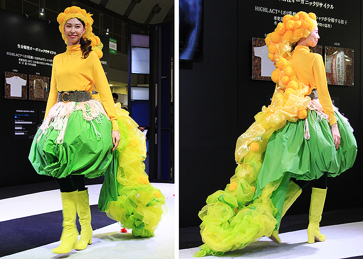 そんな近未来を感じさせるファッションショーが、エコプロ2022(東京ビッグサイト 12月7~9日開催)ハイケム ブースで行われ、環境教育で訪れていた小中学生から繊維業界担当者まで多くの人の注目を集めた。