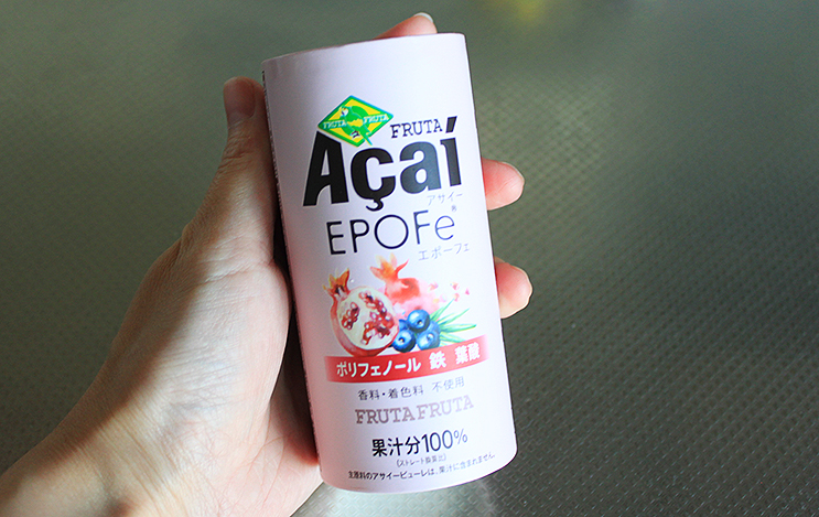 アサイーやザクロなどの果実をミックスした「アサイーEPOFe」は、女性のための、アサイースムージーで、アサイーの栄養素を手軽に補給できる1本。あ、これはいちばん甘酸っぱくておいしいかも。