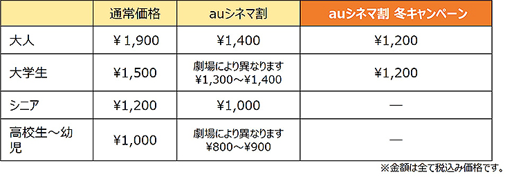 そこへ、今回の「auシネマ割 冬キャンペーン」では、それよりさらにおトクな1,200円で鑑賞できるというわけ。
